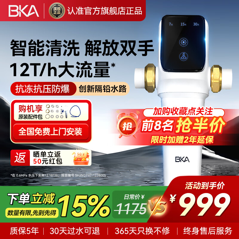 有效去除水中的大颗粒物质和杂质,保证我们喝到的水更加纯净健康。BKA智能前置过滤器