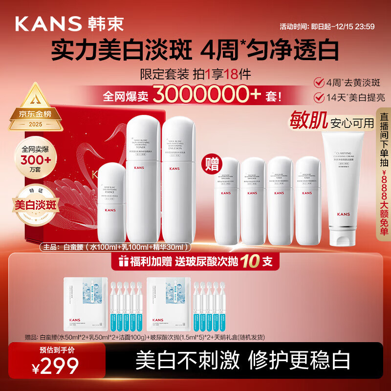 【到手269!自营包邮】珀莱雅 水漾芯肌水乳(洁面+水+乳+面膜)补水护肤品化妆品套装