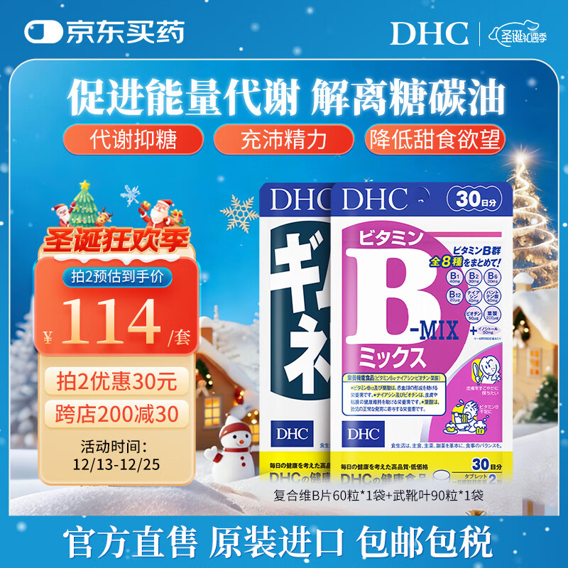 蝶翠诗(DHC)日本武靴叶抑糖片抗糖甜食克星丸分解控制缓解糖分减少碳水吸收 武靴叶抑糖片+复合维B(代谢控糖组合)- 1袋*1袋