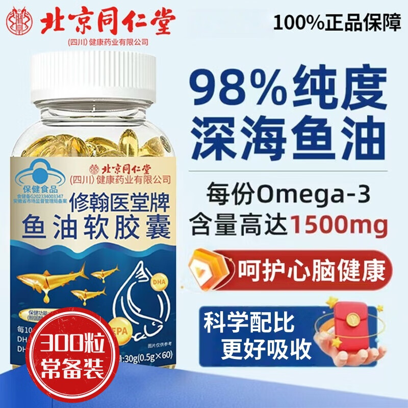 BYHEALTH汤臣倍健深海鱼油omega3纯度95%以上进口高纯度EPA降血脂甘油三酯 98.9%高纯极地鱼油 60粒*1盒 【三高失眠脱发】