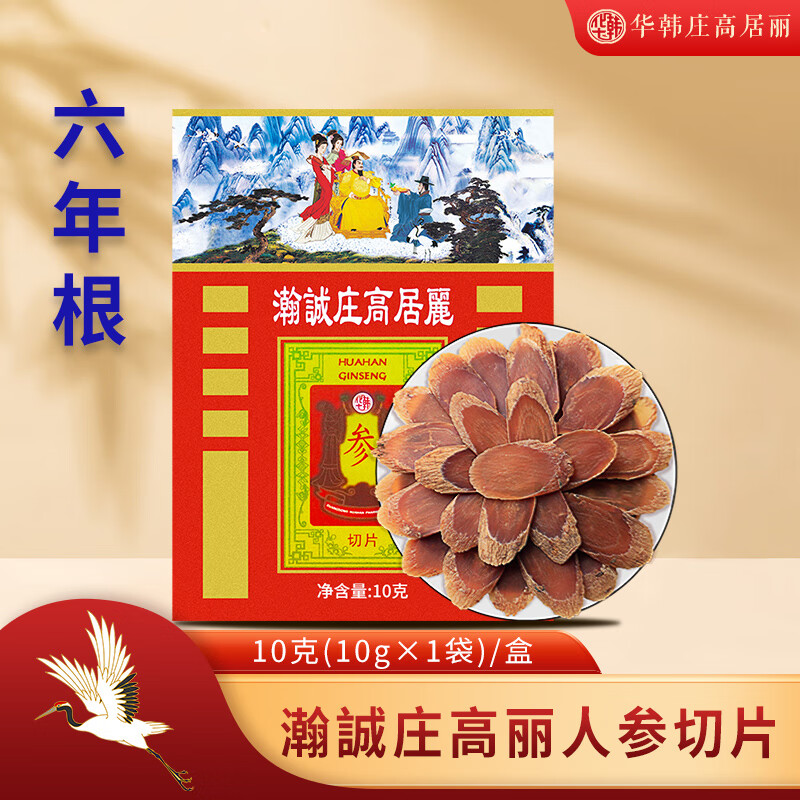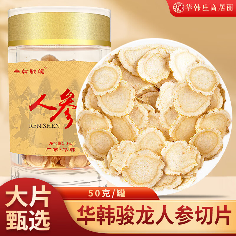 华韩骏龙人参园参片50克山水景色罐健康精选吉林长白山生晒参煲汤滋补品泡酒药材春节送礼礼品