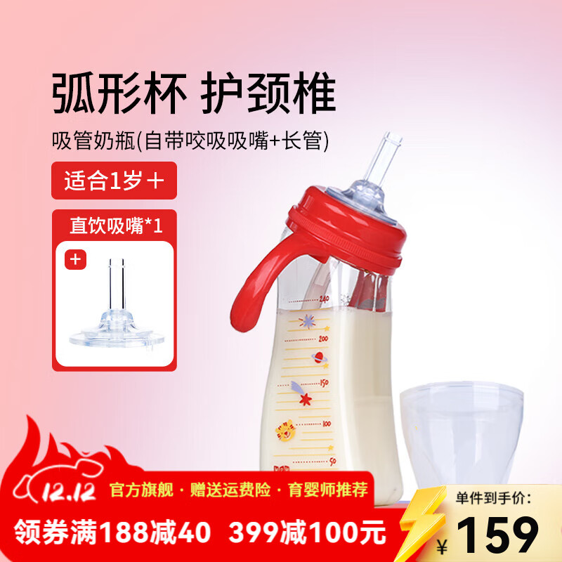 卡蜜迪(kamidi)一杯3用婴幼儿童保温杯316不锈钢吸管鸭嘴宝宝学饮保温奶瓶喝水杯 贝拉红 260ml (吸管+鸭嘴)