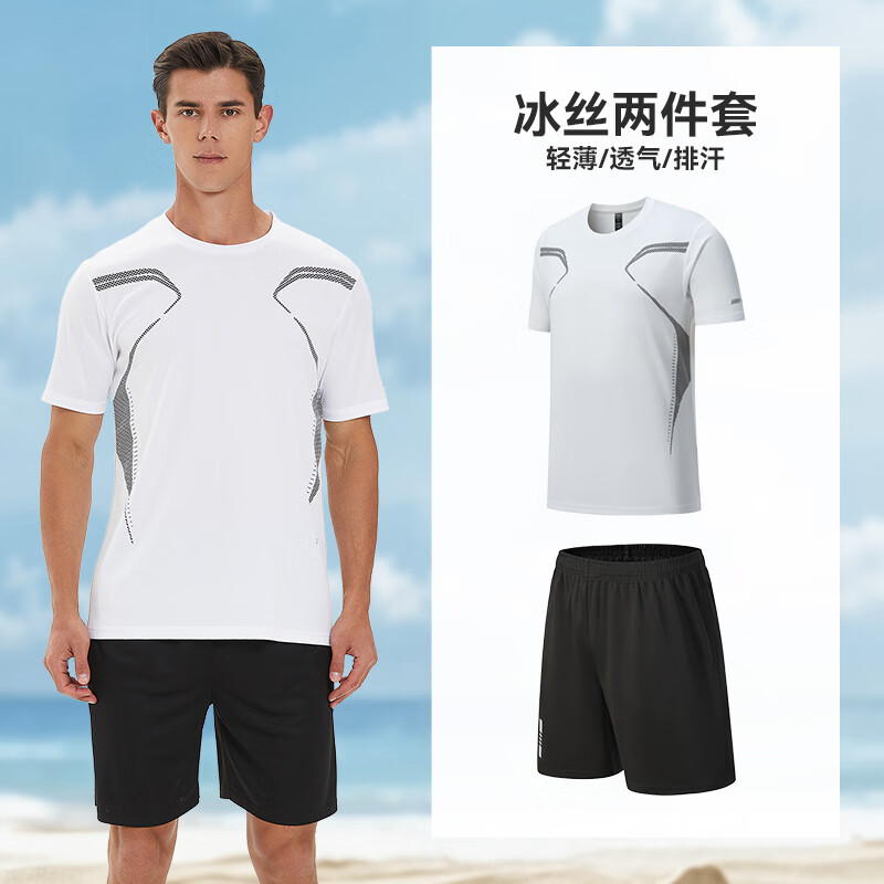 VICTORIATOURIST【断码清仓】运动套装男健身紧身衣户外骑行晨跑速干衣训练服 【春夏款】白色两件套 2XL(建议135-155斤)