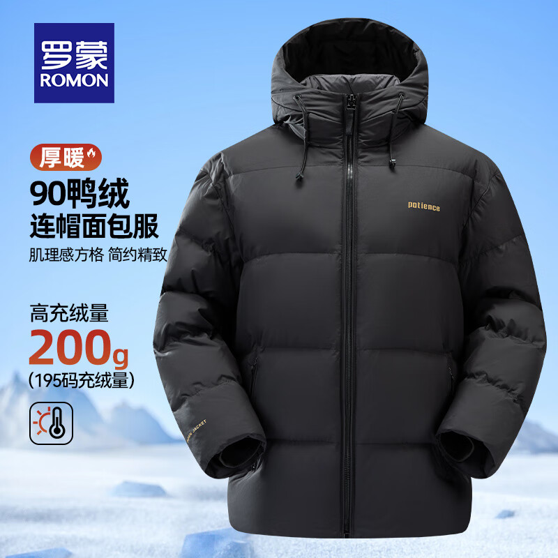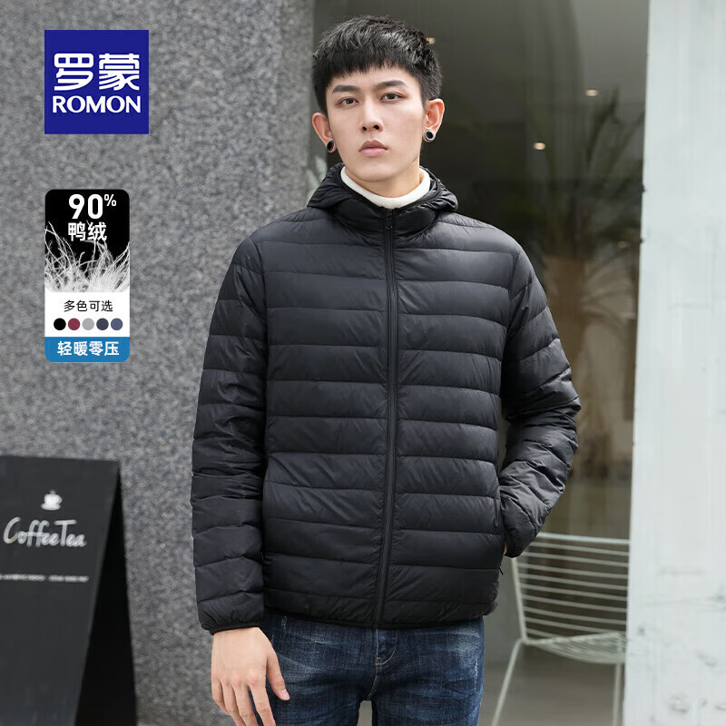 罗蒙男士短款羽绒服秋冬新款中青年保暖商务休闲通勤百搭羽绒外套男 S2Y010777黑色【连帽款】 XL (180) 【建议135-150斤】