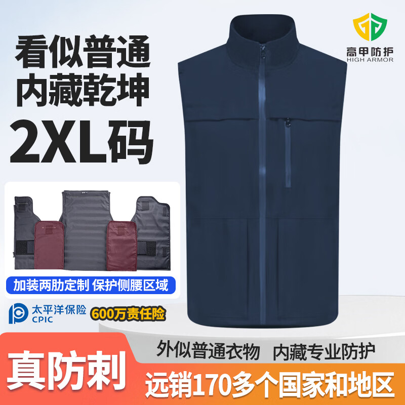 高甲防护防刺服柔性马甲战术背心隐蔽式软质防割耐砍防捅软猬锁子甲防尖锥 身高185-190体重95-105kg【蓝色2XL+两肋定制】