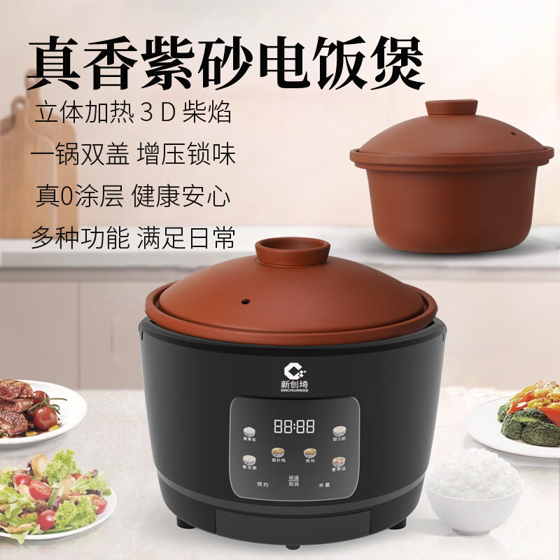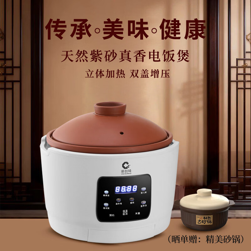 京东商城,品质无忧,万里挑一!新创埼真紫砂电饭煲0涂层纯紫砂内胆智能家用多功能煲仔饭煮粥煲汤无涂层电砂锅环抱立体加热3L预约定时 白色 3L 配(紫砂内胆+紫砂双盖)