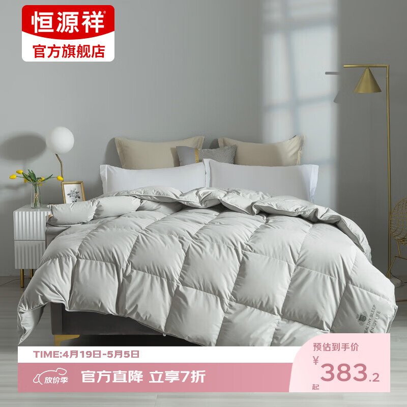 恒源祥被芯抗菌鹅绒被子白鹅绒保暖蓬松防钻绒秋冬四季羽绒被轻盈蓬松 波兰进口抗菌羽绒被-浅灰色 200*230cm 3.4斤【春秋被】