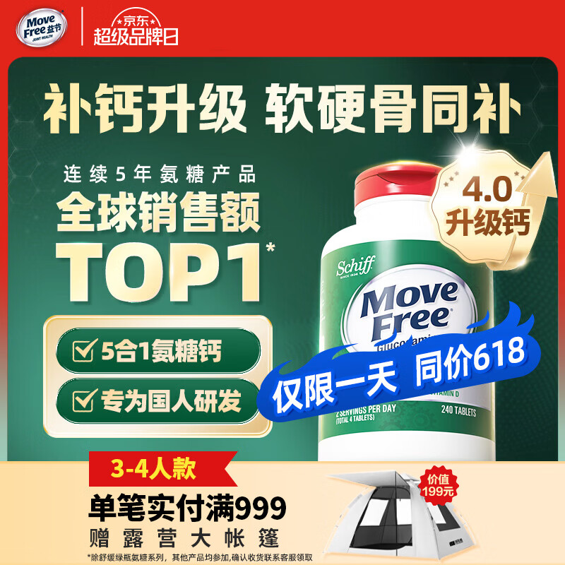 【JD旗舰店】益节(Move Free)氨糖软骨素钙片 红瓶200粒/大瓶装