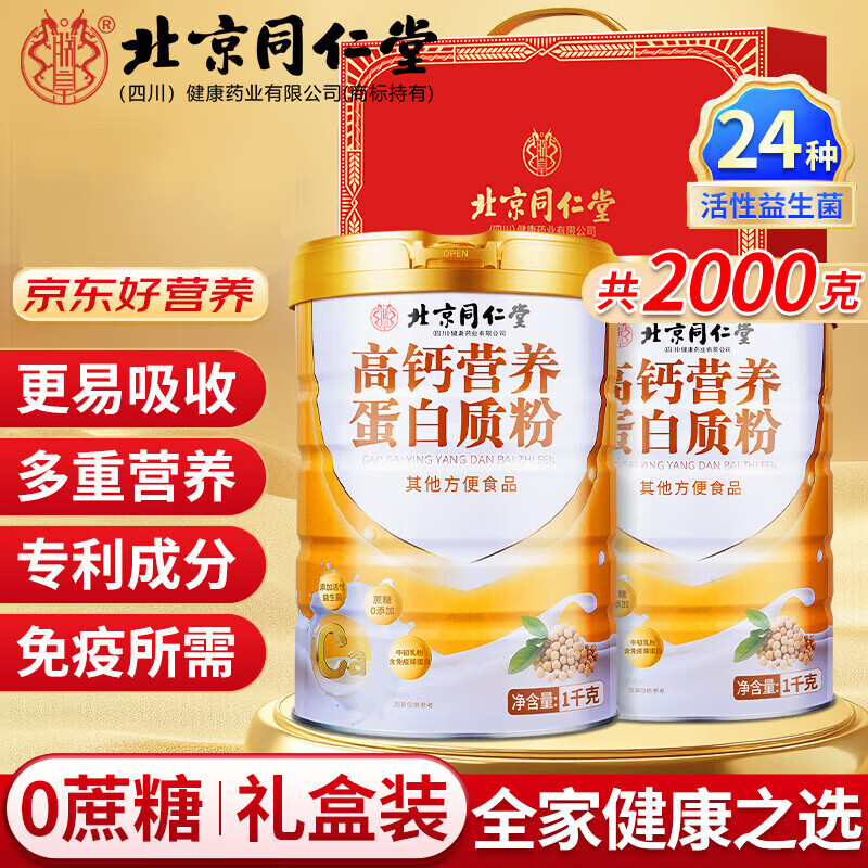 【0蔗糖】北京同仁堂高钙营养蛋白质粉1000g*2桶