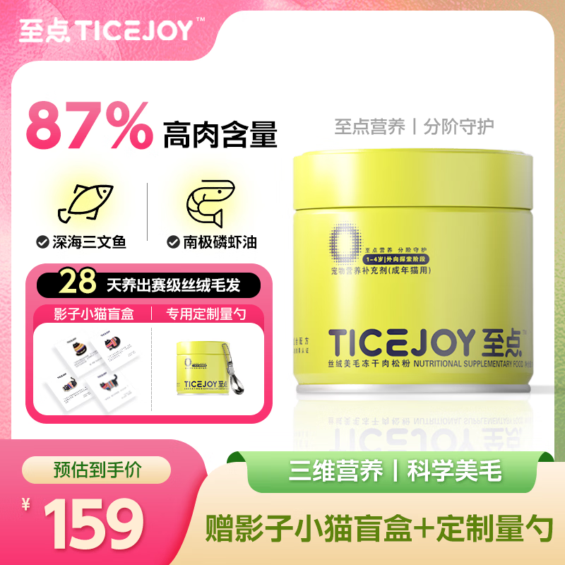 至点 猫用进口丝绒美毛冻干肉松粉鱼油 70g