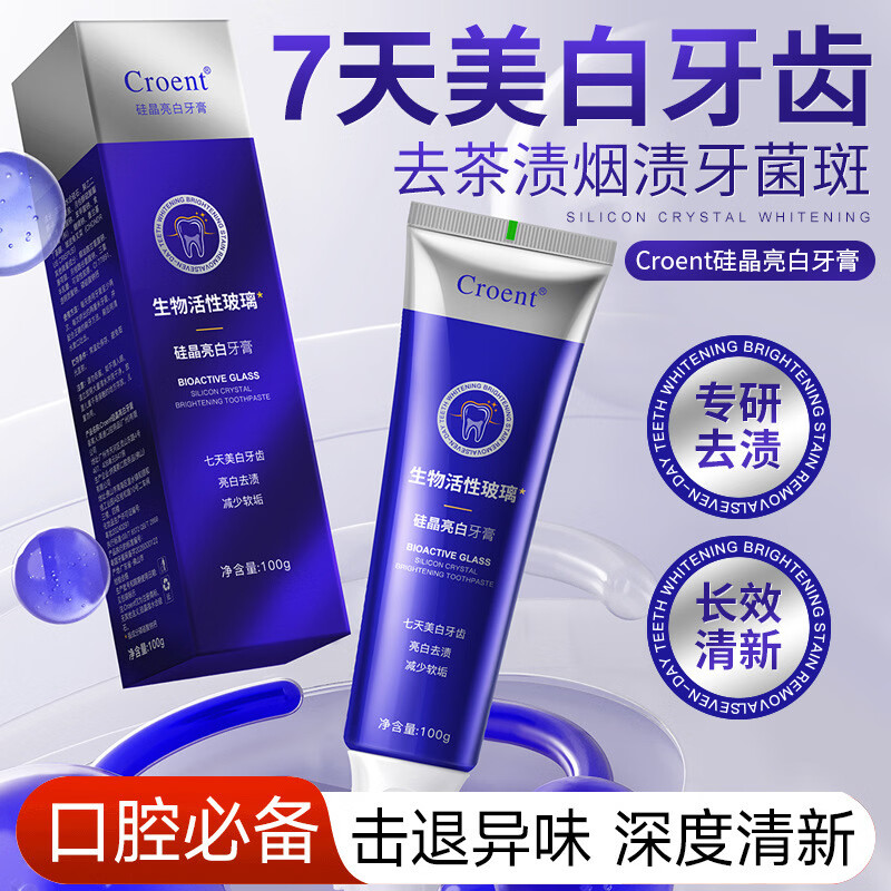 BOP活性抗菌肽美白牙膏,含氟口腔牙齿亮白,7天亮白提升3度,生物溶渍色修科技,活性抗菌肽,由紫变蓝去黄修白~
