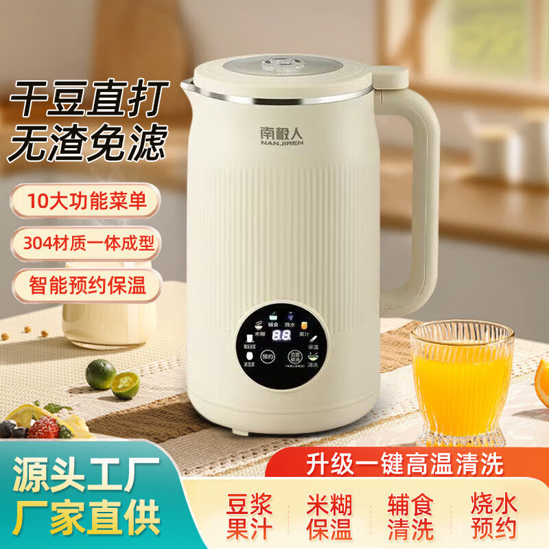 南极人豆浆机破壁家用全自动大容量免煮静低音智能料理榨汁家用米糊机不锈钢辅食机五谷杂粮榨汁机搅拌机 米色黑屏款豆浆机【304材质6叶刀】 1L
