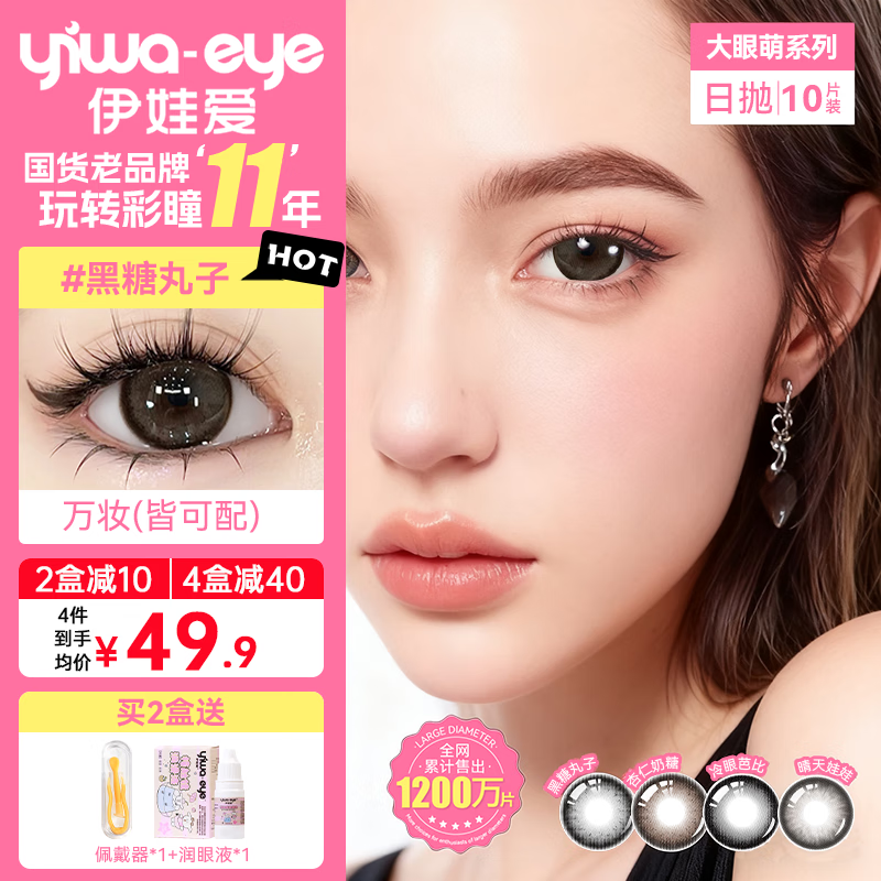 Merry dolly韩国进口美瞳年抛2片非离子彩色近视隐形眼镜水润自然薄款男女 拿铁褐/巧(14.0中等扩瞳hot/日系减龄芭比) 425度