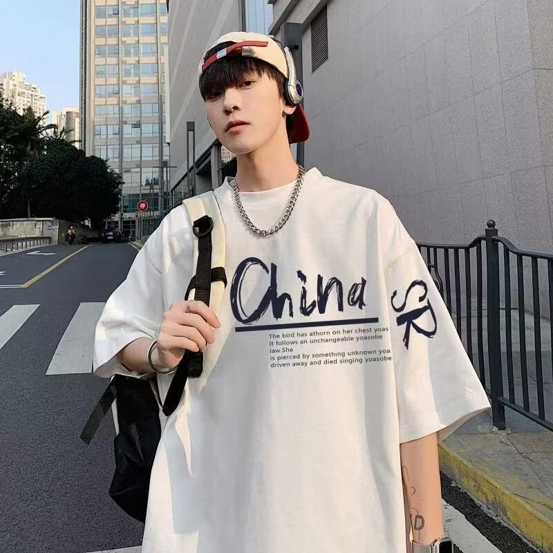 NASAR-FARM重磅短袖t恤男女落肩款纯棉国潮中国宽松ins潮t恤情侣半袖上衣服 DLJ星空-白色(偏大一码)  L (120-140斤)【拍2件69】NASAR-FARM 重磅短袖t恤