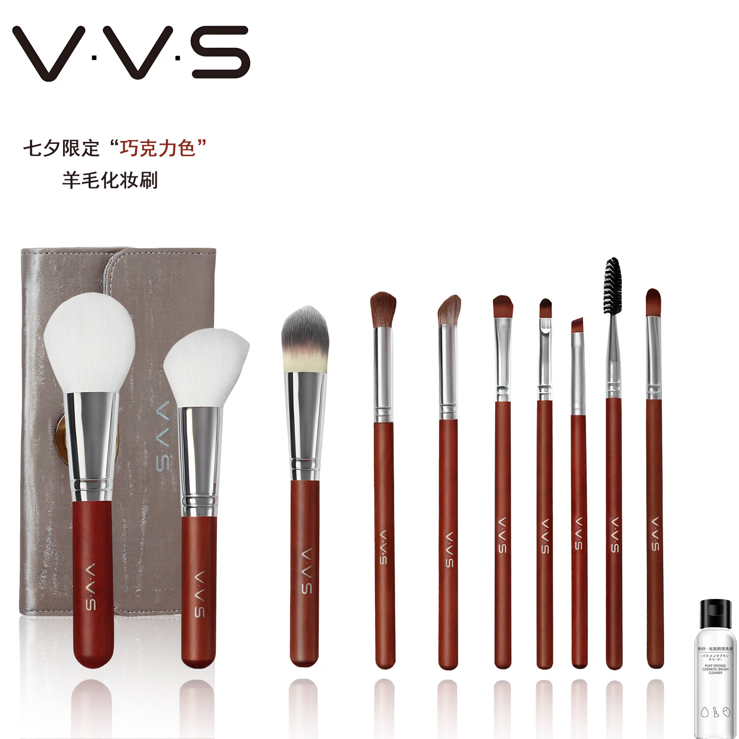 VVSHOW化妆刷套装天然亲肤羊毛刷粉底眼影睫毛刷新手推荐七夕情人节礼物 巧克力色套装(标准套装) 10支 套装+包