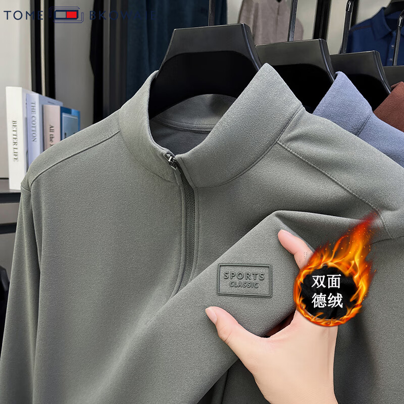 【推荐理由】雅鹿男装拉链德绒卫衣男2025年冬季新款商务休闲套头宽松男士保暖衣 灰色 L (110)(建议120-130斤)