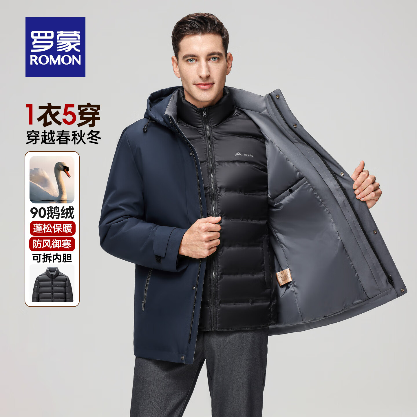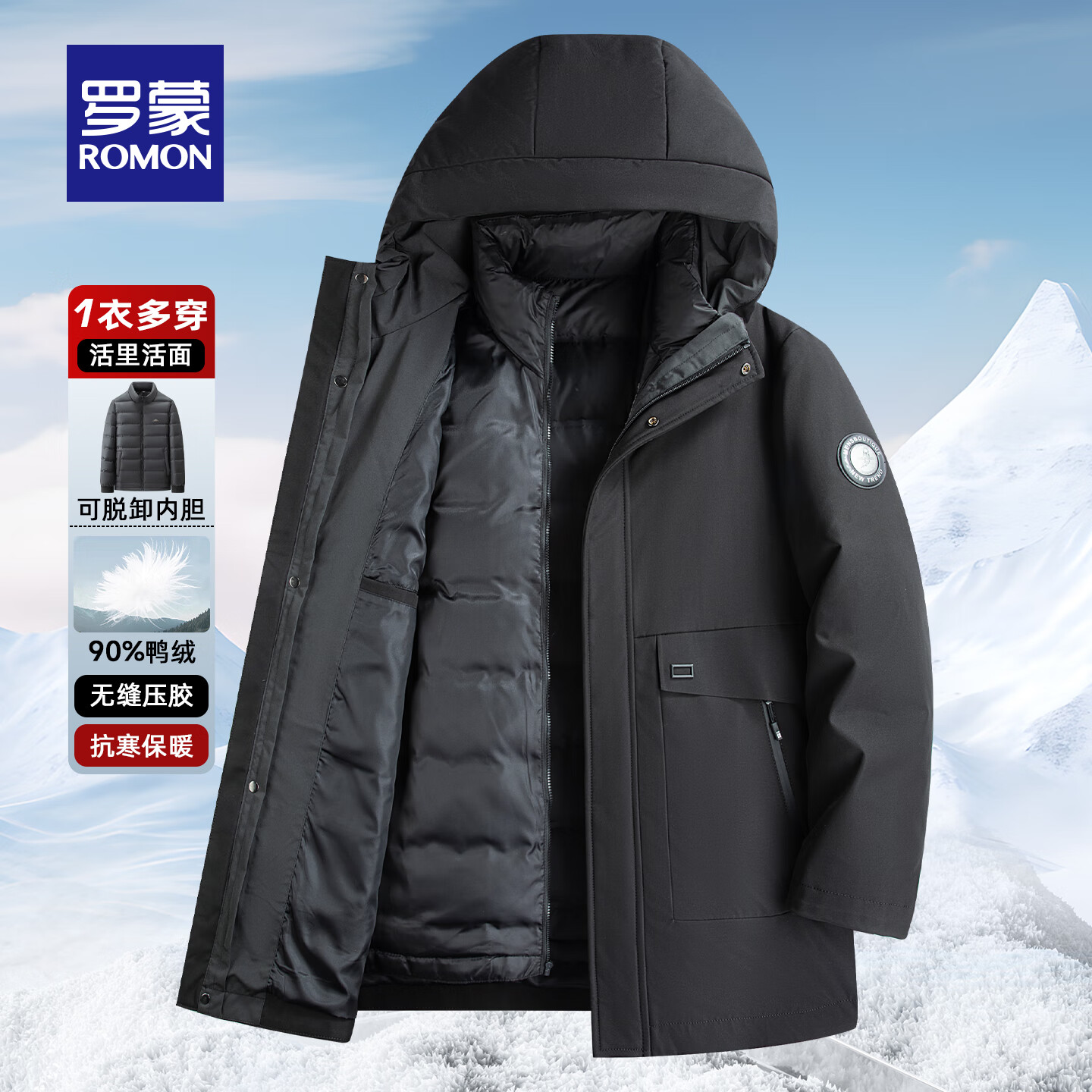 京东商城,品质无忧,万里挑一!罗蒙(ROMON)轻薄翻领羽绒服男中老年2025秋冬新款商务休闲爸爸装短款保暖外套 黑色 4XL (195) 【建议180-200斤】