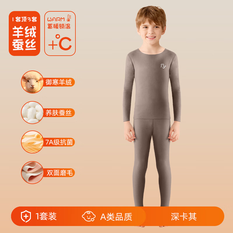 *羊绒蚕丝,蓄热锁温,A类母婴级标准,双面磨毛,软糯亲肤,1套顶3套,暖暖过冬!【39.95包邮】猫人(MiiOW) 儿童秋冬羊绒蚕丝加厚保暖内衣套装