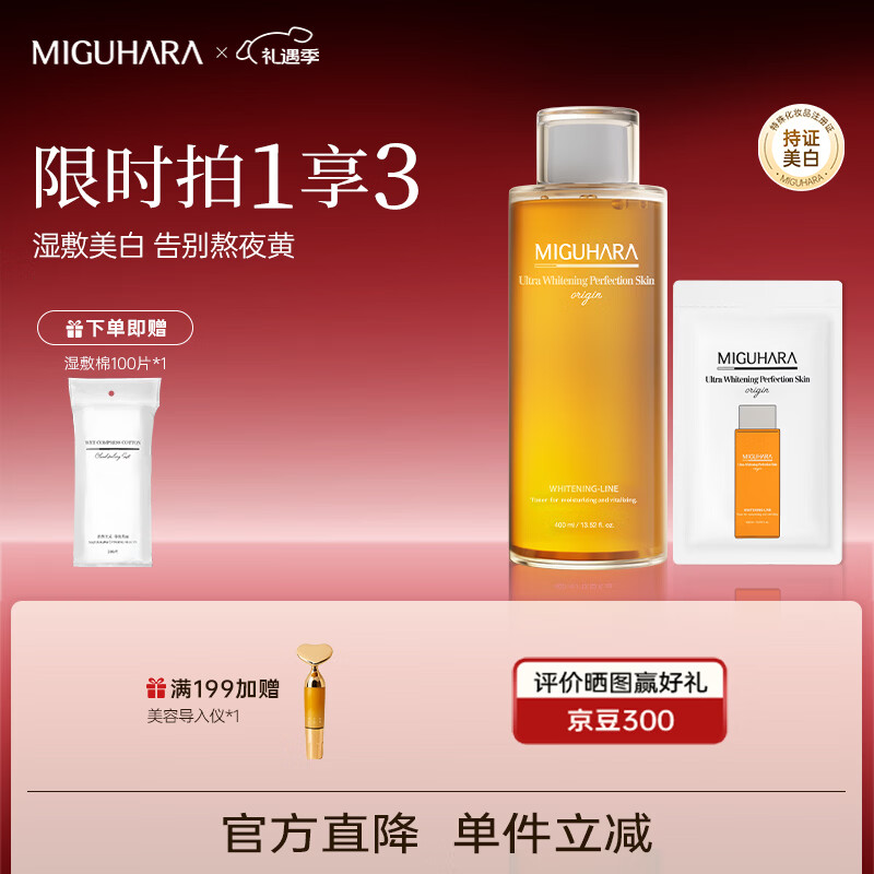 早补水,晚褪黄,一套KO暗沉松垮,定格Q弹少女肌,核心烟酰胺成分,幻彩水润,细腻肌肤。色娜娜爽肤水 精华水500ML-玻尿酸+烟酰胺各1瓶