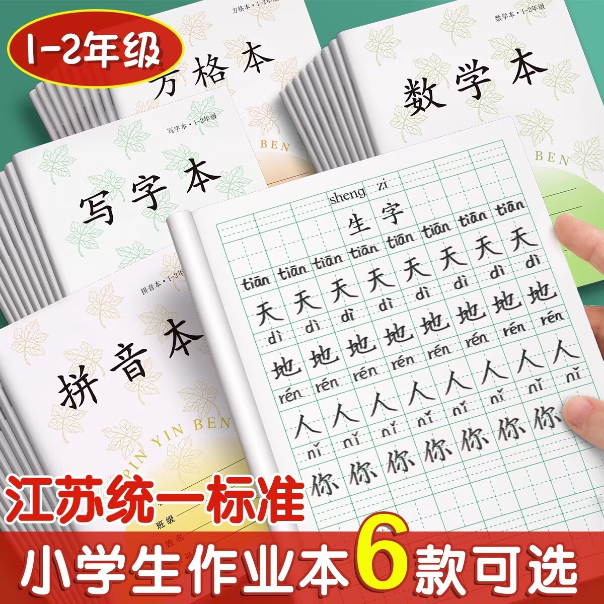 汉状元书院田字格本一年级二年级小学生作业本1-2年级拼音本数学练字本方格本写字本日格本练习标准江苏统一 【1-2年级推荐40本】田+拼+写+数/ 各10本