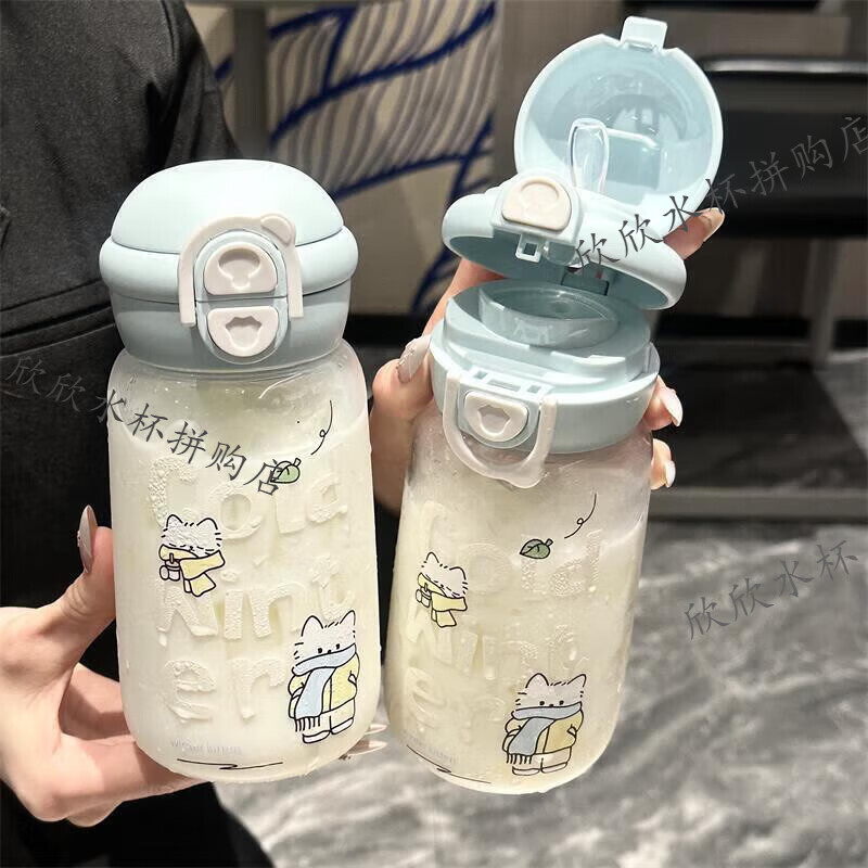 京东商城,品质无忧,万里挑一!茶花塑料杯随手杯男女大容量学生杯子户外便携带盖杯子简约防漏水杯 黄+粉+绿【三件套】 520ml