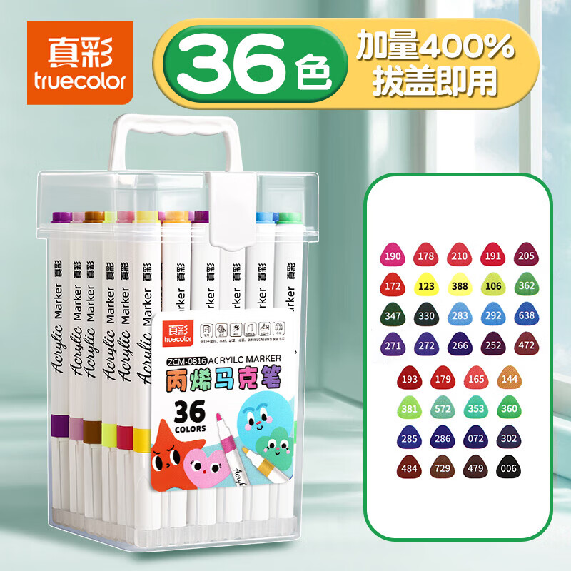 京东商城,品质无忧,万里挑一!得力(deli)丙烯马克笔不透色可叠色儿童小学生美术专用初中生防水无毒可水洗幼儿园专用水彩笔画画笔 【加量100%正握姿三角杆】24色