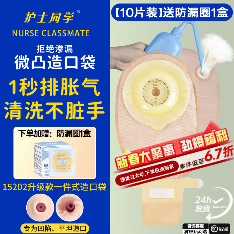 京东商城,品质无忧,万里挑一!护士同学70mm二件式造口袋两件式双层无纺布防漏平面底盘造瘘袋 锯齿平盘(10个)+活性炭袋子【10个】-70mm