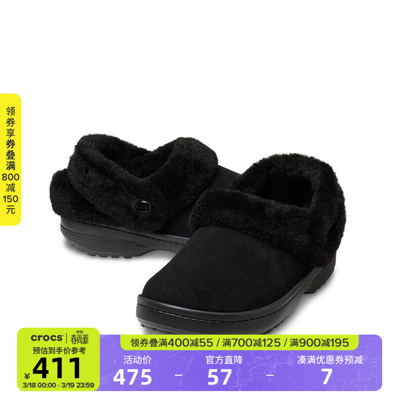 CROCS卡骆驰经典云朵暖绒洞洞鞋保暖舒适棉拖花园鞋外穿女拖鞋|212854 骨白色-2Y2 38 (240mm)