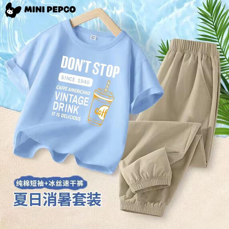 暇步士(Hush Puppies)【莱卡】童装儿童男小童春季新款弹力时尚简约潮流套装 米白色 【宽松版】 130