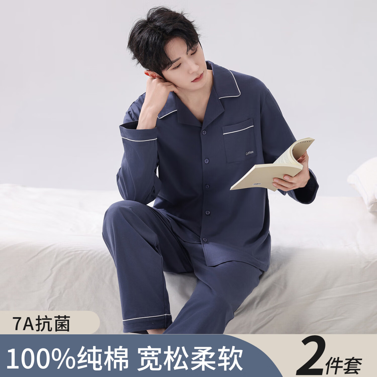 京东商城,品质无忧,万里挑一!猫人(MiiOW)高端纯棉男士睡衣春秋款长袖2026款宽松大码可外穿家居服开衫套装 5130 L