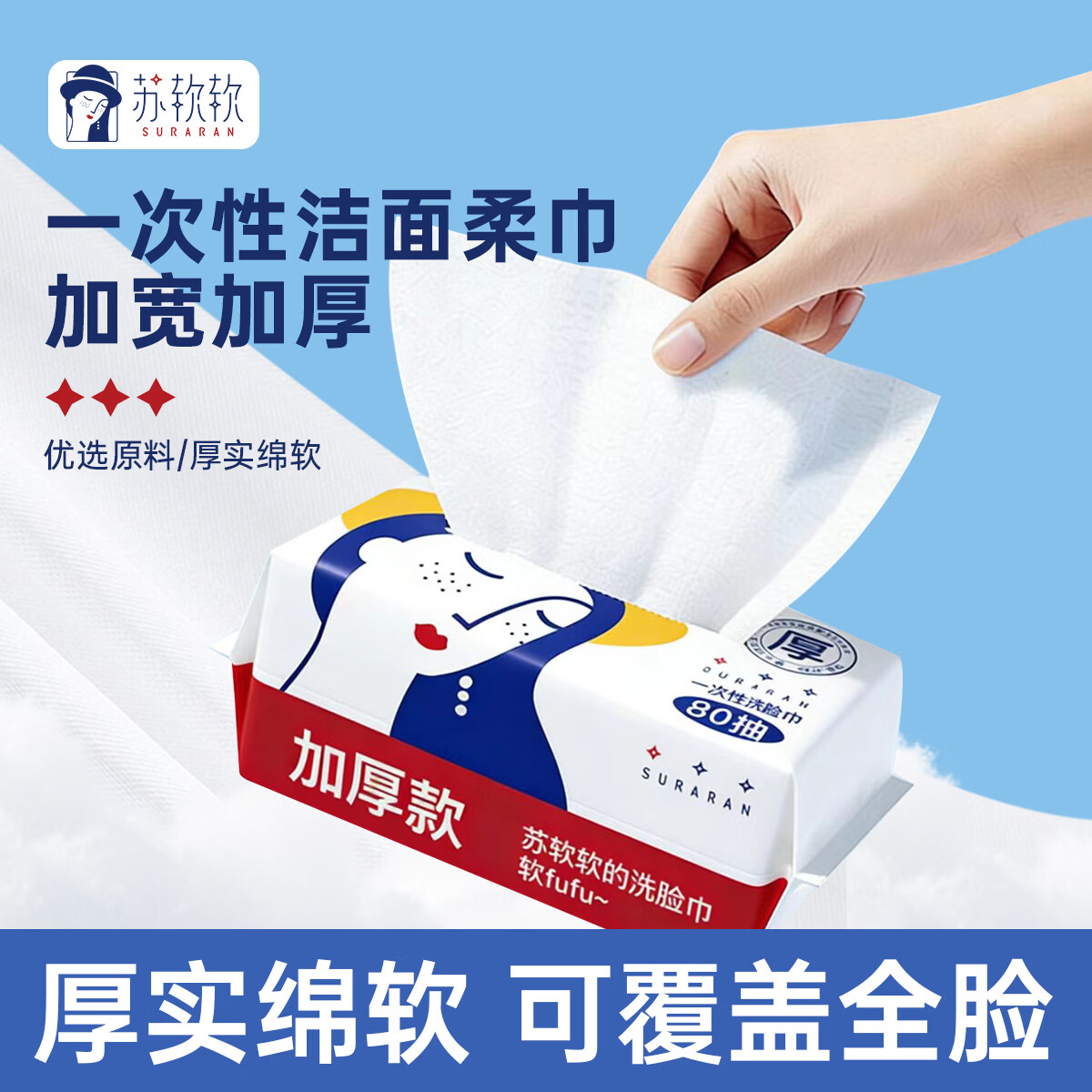 苏软软加大加厚洗脸巾一次性洁面巾悬挂抽取式洗脸巾棉柔巾擦脸巾送挂钩 新升级2.0【更大更厚】180抽*1提