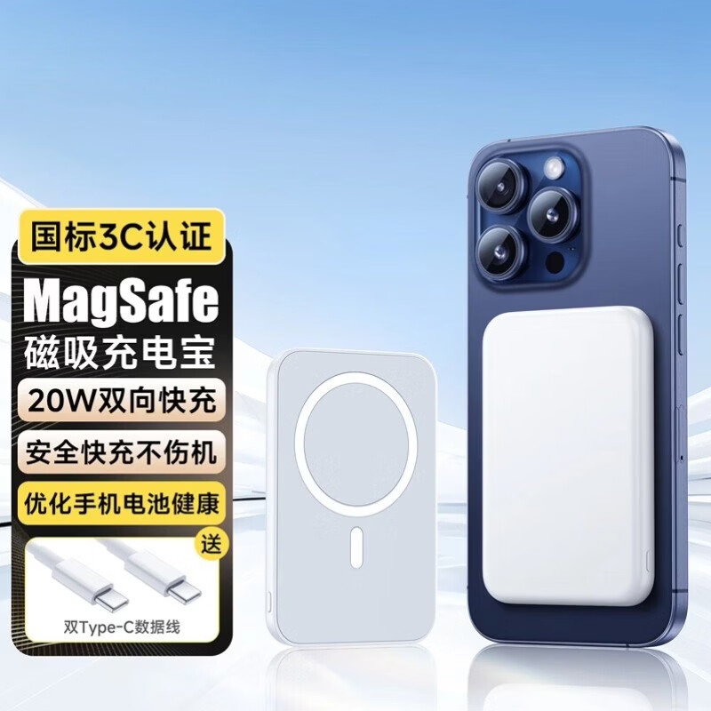 二伯【3C认证充电宝 可上飞机高铁】27000毫安22.5w超级快充自带线大容量移动电源适用苹果安卓露营用 20000毫安(新3C认证+苹果安桌双线+数显)) 米橙色/二伯旗舰款【3C MFI双认证】