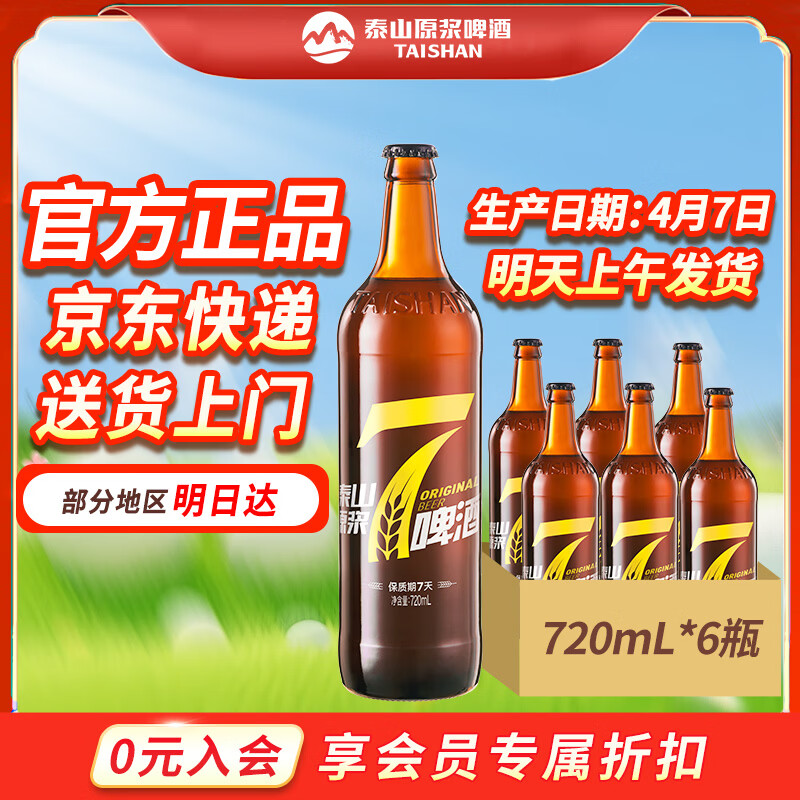京东商城,品质无忧,万里挑一!泰山啤酒泰山原浆啤酒9度28天新鲜9度倒标全麦芽酿造啤酒 28天两箱装 450mL