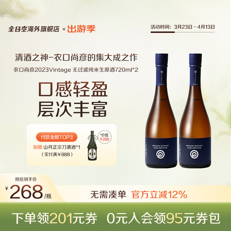 农口尚彦研究所全日空 农口尚彦日本原装进口无过滤纯米生原酒清酒烧酒720ml 农口尚彦无过滤纯米生原酒*2瓶2023Vintage