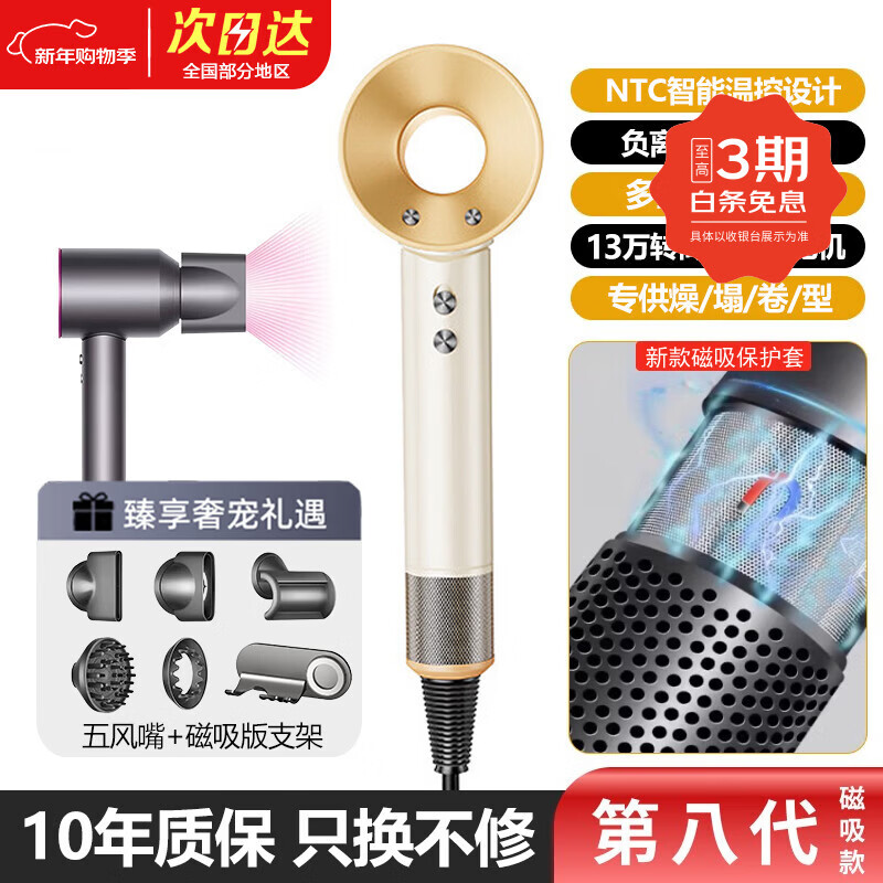 徕芬瑞悦吹风机家用高效速干电吹风 负离子护发 降噪吹风筒 送可拆卸吸盘式可拆卸磁吸挂架 实用礼物礼品 落日玫瑰【吸盘式磁吸挂架+磁吸风嘴1个】 【线长1.7米】亿级水润负离子 | 顶配版 礼盒装