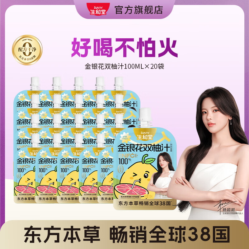 生和堂【杨超越推荐】金银花柚子汁双柚汁苹果山楂汁饮料果味便携饮品 20袋金银花双柚汁100ml