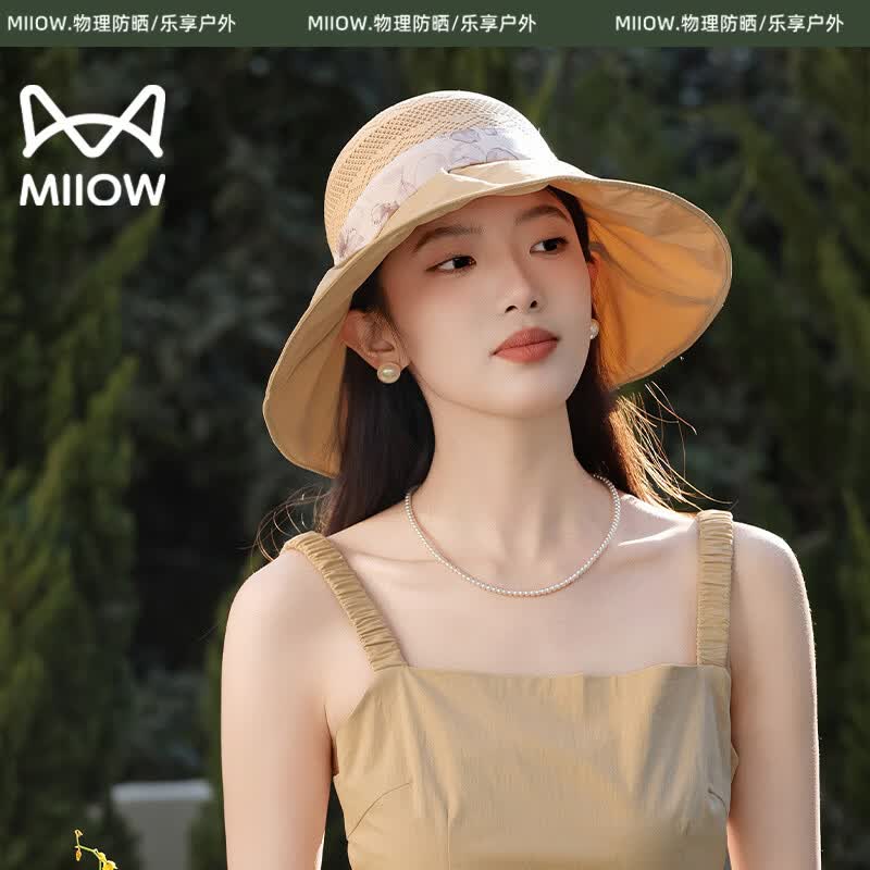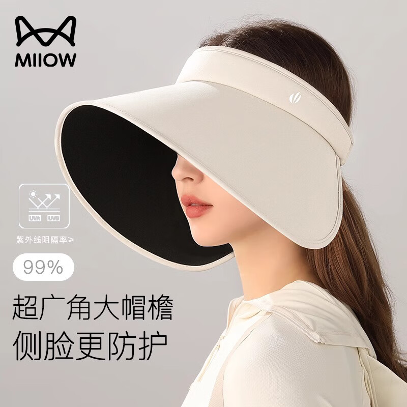VVC防晒帽女夏季蓓蕾遮阳帽防紫外线空顶帽户外沙滩太阳帽子 奶杏色 可调节