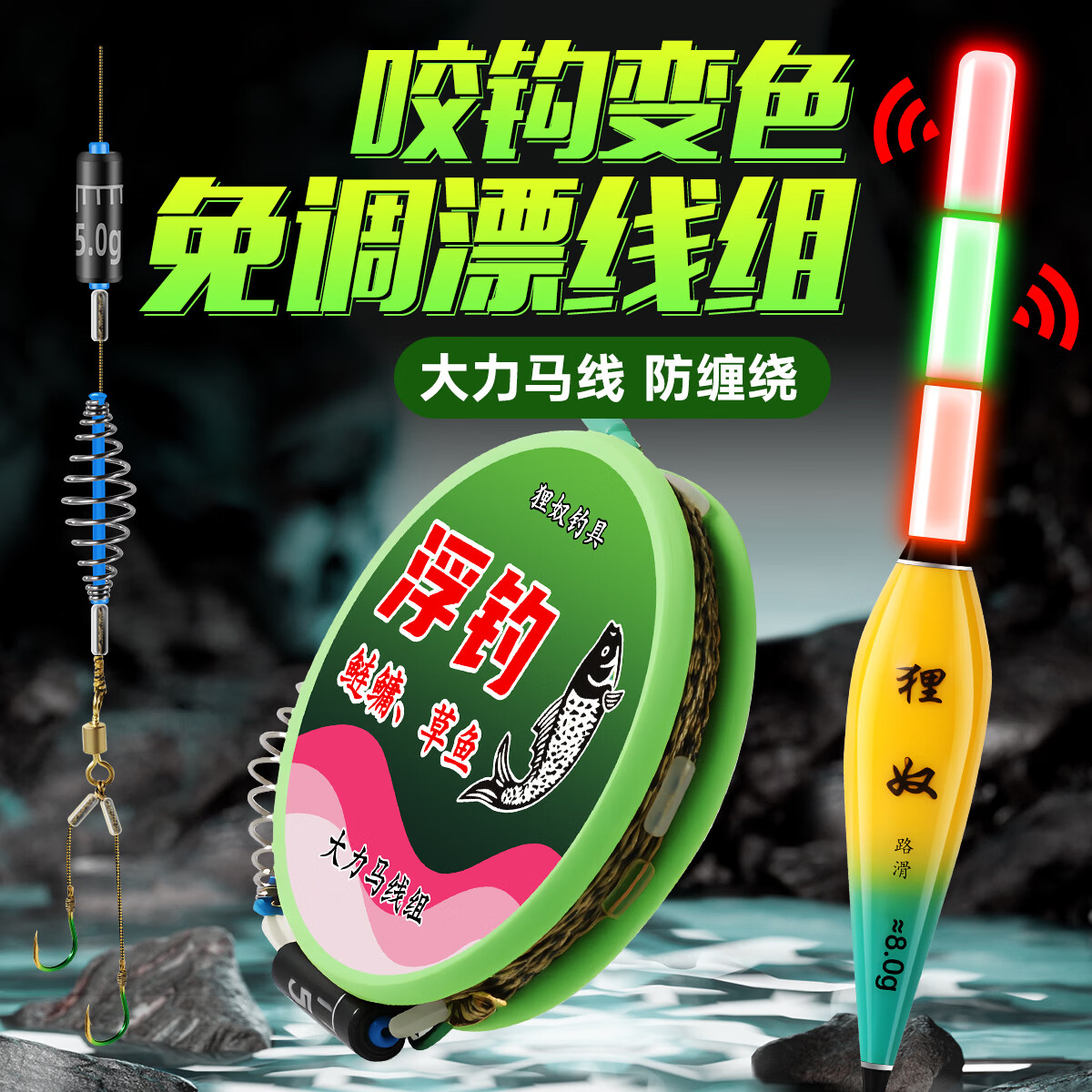 浮钓鲢鳙线组夜光免调成品主线全套大力马线弹簧曲柄伊势 8.1米(4卷)1支夜光变色漂 主线6.0+子线5.0+13号钩3-40斤