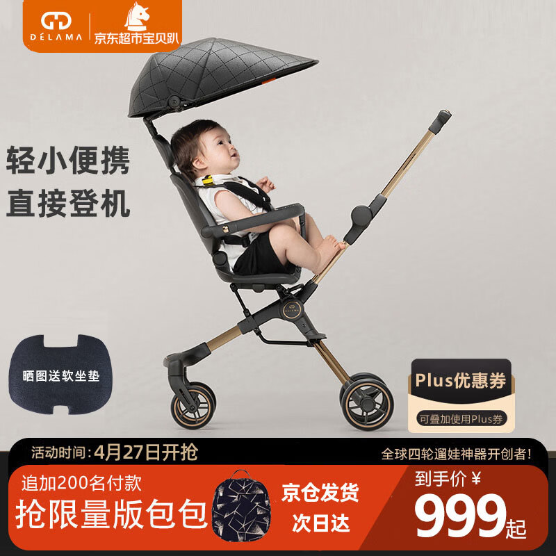 京东商城,品质无忧,万里挑一!永久儿童三轮车溜娃神器手推车轻便可折叠可坐可躺宝宝婴儿遛娃车 永久【绿野仙踪PIus款】贝壳座椅