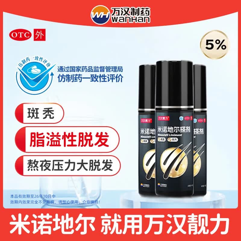 京东商城,品质无忧,万里挑一![万汉靓力]米诺地尔搽剂 5%*60ml 1盒装 5%60ml*1瓶用于治疗脱发严重男专用防脱生发育发际线增液洗发水脱发白 重度脱发体验款