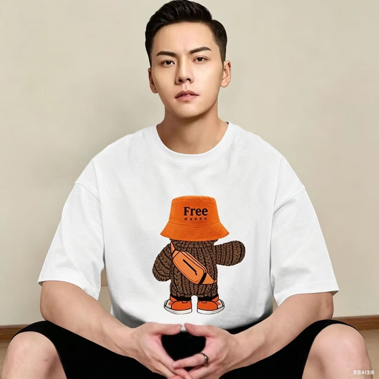 【陈伟霆同款】夏季新款印花宽松圆领T恤打底衫