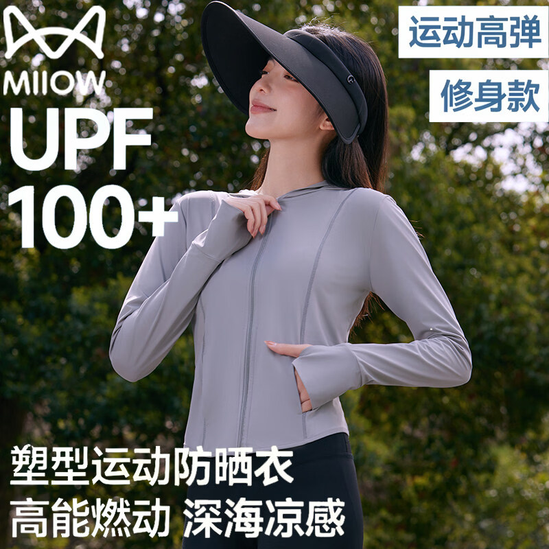 猫人UPF100+收腰防晒衣女夏季防紫外线运动修身防晒服遮阳短外套 幻影黑 UPF50+【原纱收腰防晒衣】 L 推荐100斤-120斤
