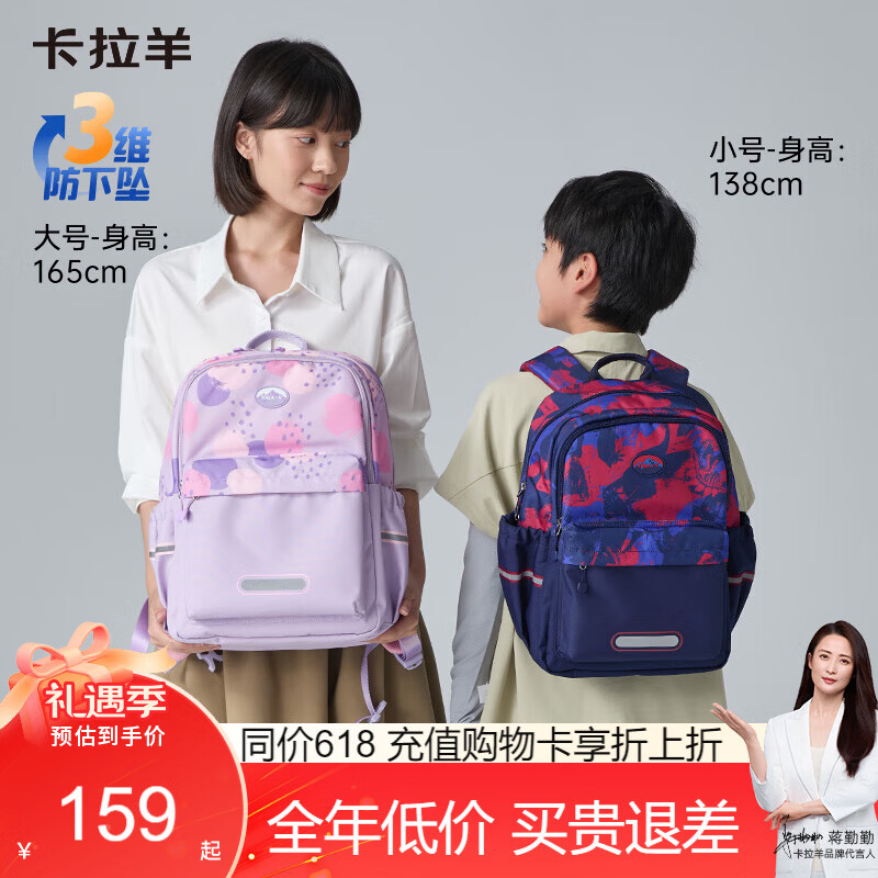 京东商城,品质无忧,万里挑一!卡拉羊小学生游学包高颜值女书包男儿童背包轻便多功能大容量双肩包漫游 【18L】粉红爱丽丝