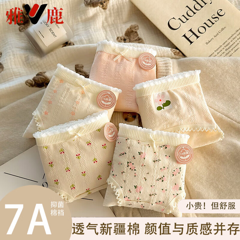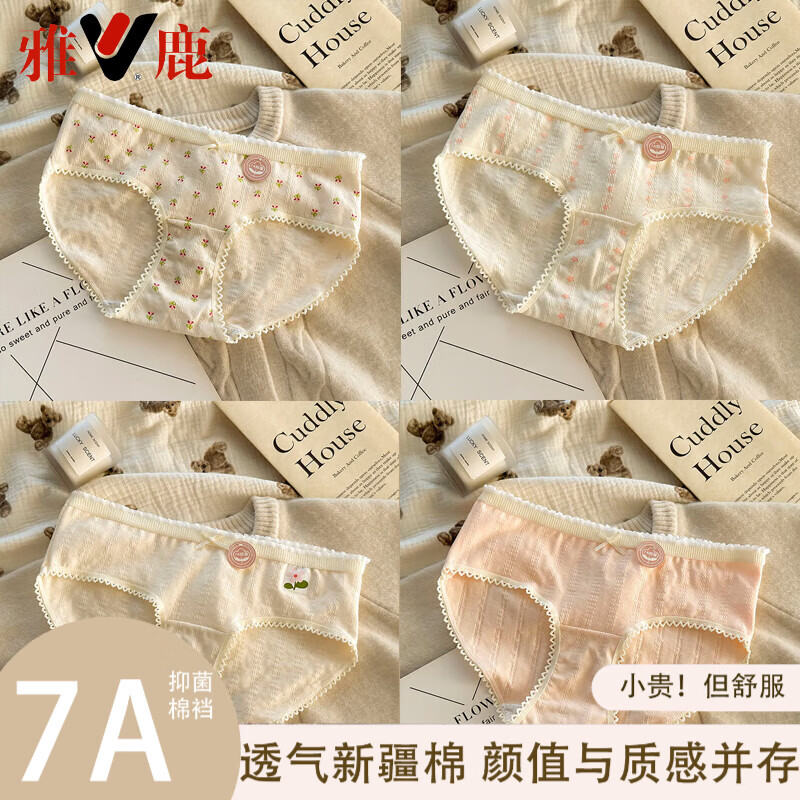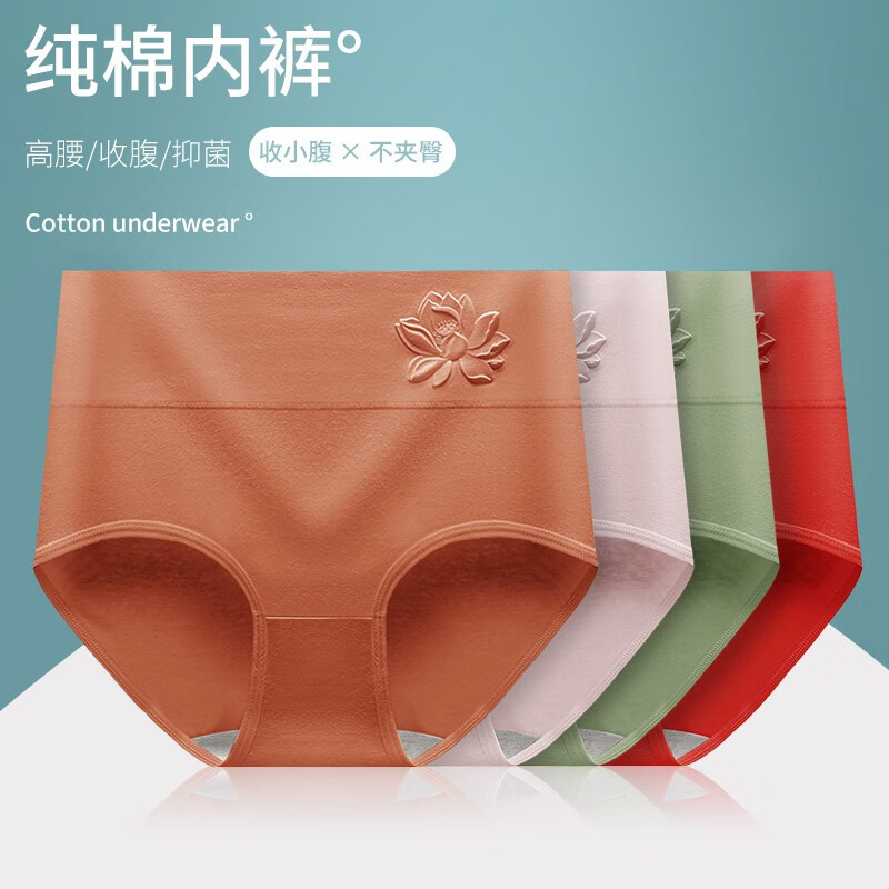 京东商城,品质无忧,万里挑一!芬腾内裤女【专收小肚子】4条装10A抑菌加长纯棉裆舒适高腰女士 浅紫/虾粉/浅绿/浅黄 4条 L