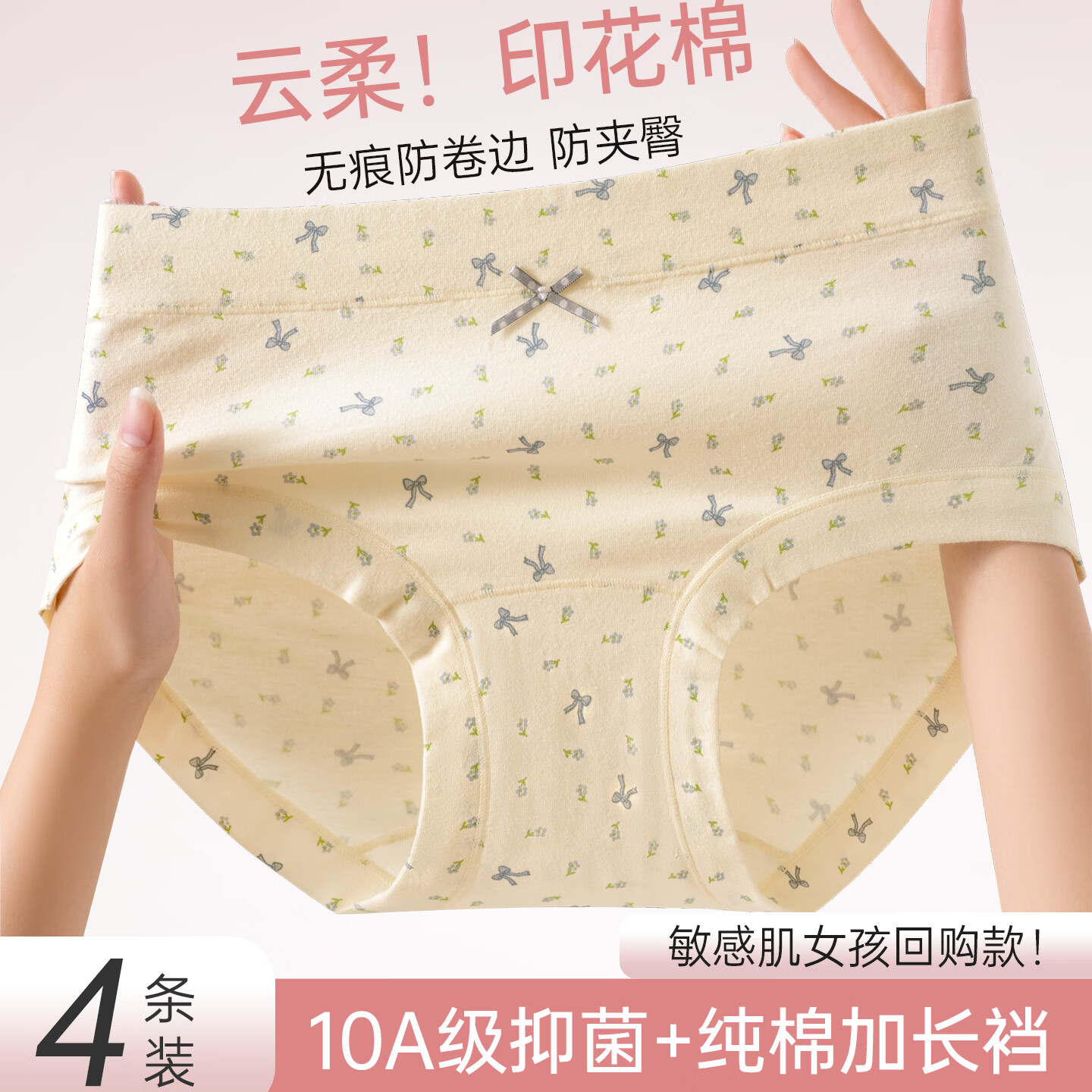 芬腾内裤女【专收小肚子】4条装10A抑菌加长纯棉裆舒适高腰女士 浅紫/虾粉/浅绿/浅黄 4条 L