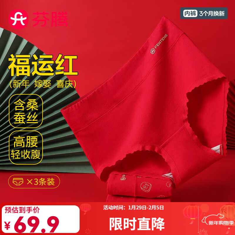 宜而爽 7A级藏红花温变抗菌中高腰女士内裤 4条装