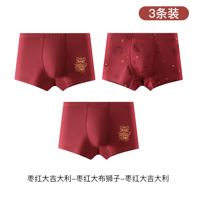 猫人儿童纯棉内裤男童本命年红色平角裤中大童男孩四角短裤发育期 红大吉大利+红大布狮子+红大吉大利 3条 110 推荐体重20-30斤