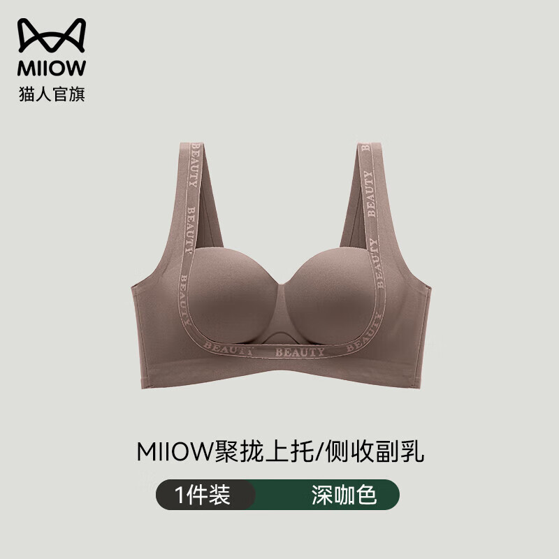 猫人(MiiOW)品牌内衣女小胸聚拢收副乳防下垂2025新款固定杯无钢圈无痕文胸罩 深咖色 【提拉女王】 85A 38 【适合125-145斤】