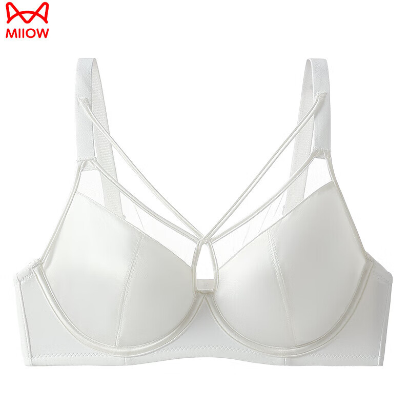 猫人(MiiOW)品牌蕾丝内衣女大胸显小收副乳防下垂全罩杯聚拢上托舒适性感文胸 白色 【大胸防下垂 穿出蜜桃胸】 75B C 【通杯建议85-95斤】
