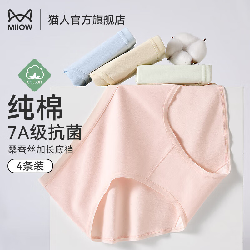 猫人(MiiOW)男士内裤男纯棉7A抗菌防螨平角四角男生短裤头舒适 【纯棉底裆】抑菌透气升级款 4条 2XL (推荐130-150斤)